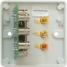 Utilising the DADO-STâ„¢board with front panel HD15 for VGA and internal BNC sockets, it is designed for use with 5 core RGBHV coax cables. The plate is also fitted with a yellow phono socket for video as well as left and right, gold plated, phono sockets for audio all using rear panel solder connections.