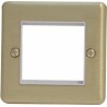 Single gang, 85mm x 85mm, satin brushed brass frame with a single 50mm wide aperture for 2 x 25mm or 1 x 50mm Euro Modules.